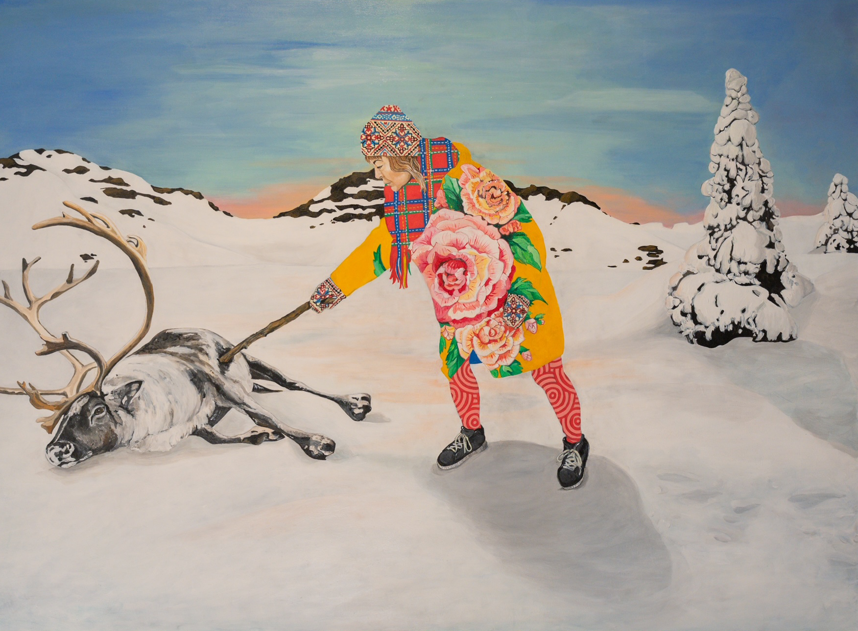 "Dálkkádatrievdan, klimatförändringar, är ett nytt ord i det nordsamiska språket, men dess effekter är redan uppenbara. Att få presentera verk på det frusna havet känns symboliskt: isen är inte längre någonting vi kan ta för givet. För många samer utgör klimatförändringar inte bara ett hot för markerna, utan även deras kunskapsvärld, deras språk och sätt att leva."