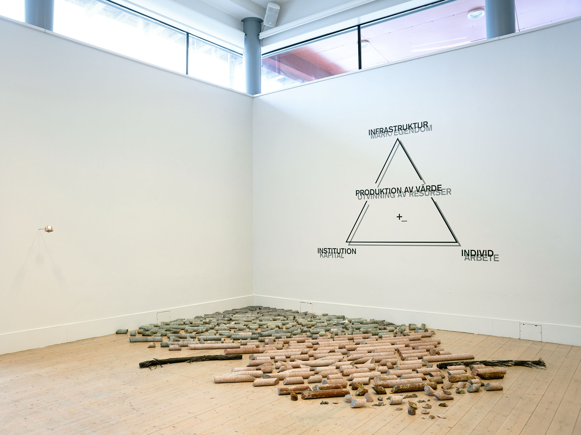 negotiation; rock cores resulting from geotechnical surveys carried out in Norrbotten for the assessment of mineral deposits, scaffolding, displacement of the institution’s office furniture to the exhibition space, workforce of Konsthallen Kulturens Hus, sections of the SEA-ME-WE3 telecommunications’ cable