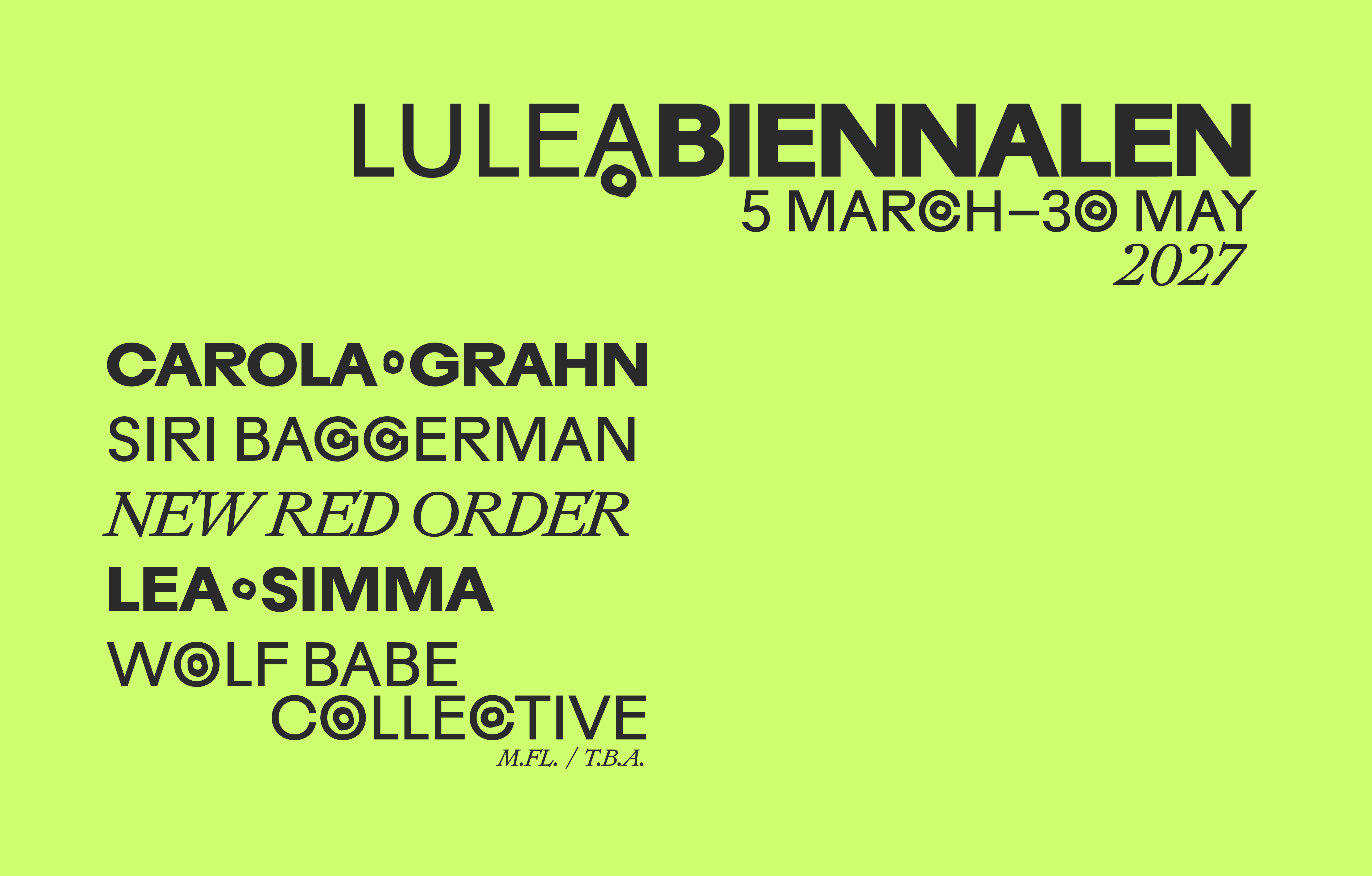 Konstfrämjandet Norrbotten proudly presents the next edition of Luleåbiennalen (The Luleå Biennial) 5 March–30 May 2027. Carola Grahn, Siri Baggerman, New Red Order, Lea Simma and Wolf Babe Collective are the first participants invited to develop the biennial together with new and returning collaborators. The invited artists are all Indigenous and share an interest in collective practices.